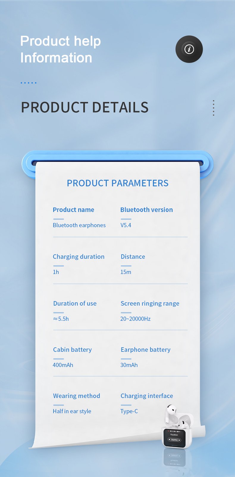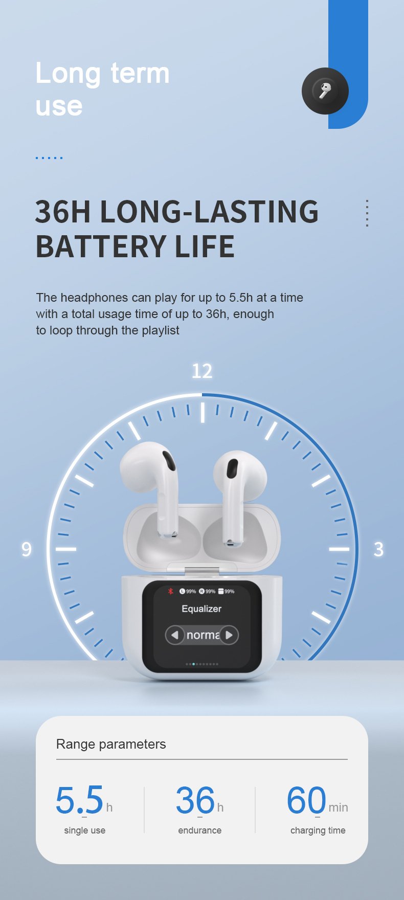 Earphone Working Time: Approximately 5.5 hours of continuous playback at 100% volume (tested)