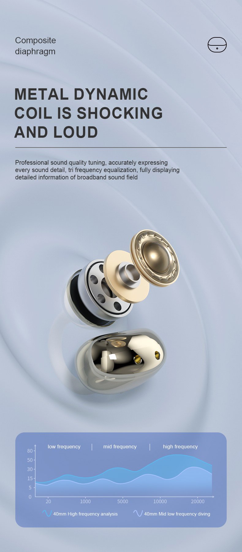 Speaker unit: ΦF10 racetrack titanium diaphragm, 32Ω±15%, 7.118±3DB 5mW