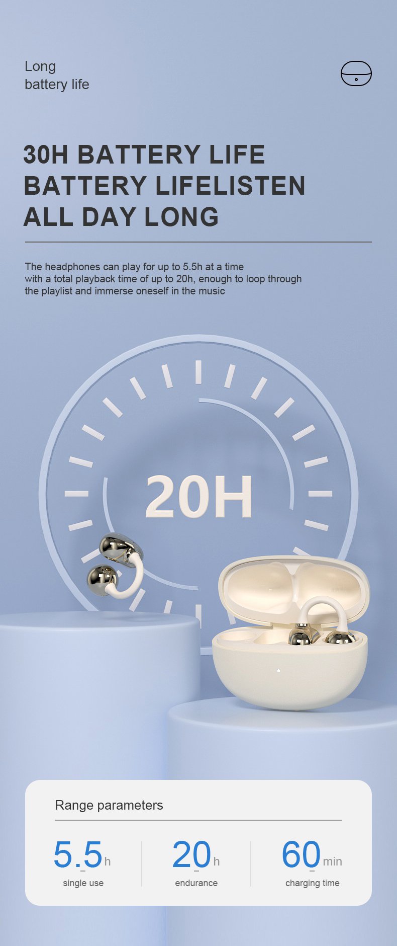 Headphone Working Time: Approximately 5-7 hours of continuous playback at 100% volume (tested)